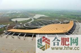 2013年5月29日24時,安全運(yùn)行36年的合肥駱崗國際機(jī)場永久關(guān)閉。5月30日零點(diǎn),合肥新橋國際機(jī)場正式啟用。新橋機(jī)場位于安徽省合肥市肥西縣高劉鎮(zhèn),距合肥市中心31.8公里,是國內(nèi)4E級樞紐干線機(jī)場,按照滿足2020年旅客吞吐量1100萬人次、貨郵吞吐量15萬噸的需要設(shè)計(jì)。跑道長3400米、寬45米;航站樓面積11萬平方米;站坪面積36萬平方米,共設(shè)機(jī)位27個,其中廊橋機(jī)位19個,遠(yuǎn)機(jī)位8個。航站樓外觀呈現(xiàn)自然流暢的弧形整體造型,整個建筑地下一層,地上兩層,局部夾層;布局長804米,最大進(jìn)深161米,屋脊最高點(diǎn)30米;屋面采用金黃色的直立鎖邊鋁鎂錳合金面板,規(guī)律設(shè)置19排屋面采光天窗。俯視整個建筑,宛若金色的展翅大鵬在江淮分水嶺上昂首欲飛,既是一張代表合肥形象的新“名片”,也是安徽又一標(biāo)志性新景觀。4個值機(jī)島、84個值機(jī)柜臺在出港中央大廳兩側(cè)對稱布置,旅客進(jìn)入出港大廳后,問詢服務(wù)臺、值機(jī)柜臺、22個自助值機(jī)終端、安檢通道一目了然;18個私密性很強(qiáng)的國內(nèi)安檢通道居中,國際出港聯(lián)檢通道布置在西側(cè),國內(nèi)、國際各司其責(zé);進(jìn)入候機(jī)廳,19座呈“剪刀狀”的登機(jī)橋?qū)⒌菣C(jī)口和到達(dá)口依次分成19個區(qū)域,出港、到港旅客各安其道,互不干擾;候機(jī)區(qū)4156個皮質(zhì)座椅用顏色區(qū)分為19個區(qū)域,整齊明快,旅客候機(jī)時可享受餐飲、購物、休閑、觀影、免費(fèi)無線上網(wǎng)等服務(wù);整個航站樓有4條出發(fā)行李輸送線和7個到達(dá)提取轉(zhuǎn)盤、5套飛機(jī)泊位引導(dǎo)單元和廣播、時鐘及內(nèi)通系統(tǒng)、航班信息集成系統(tǒng)、航班信息顯示系統(tǒng)等,涵蓋末端信息點(diǎn)位6000多個;17部扶梯和13部直梯,其中無障礙電梯10部,將航站樓的各個區(qū)域緊密聯(lián)系起來。