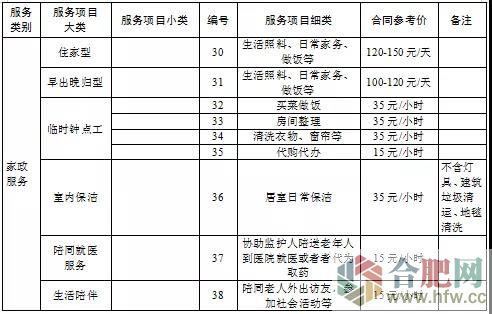 2.合肥市政府購買居家養(yǎng)老服務(wù)項目清單