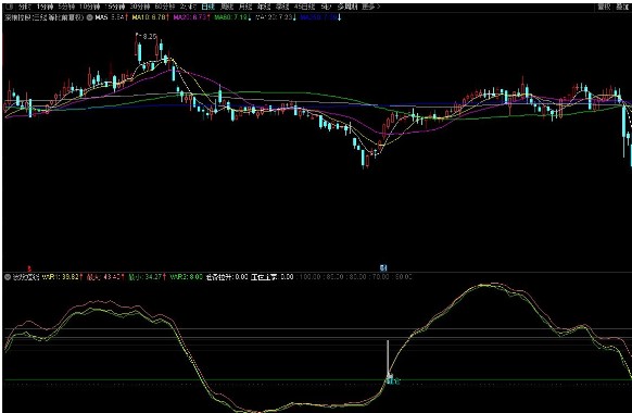 N:=50; M1:=10; M2:=20; M3:=60; VARX:=(CLOSE-LLV(LOW,N))/(HHV(HIGH,N)-LLV(LOW,N))*100; VARY:=(HIGH-LLV(LOW,N))/(HHV(HIGH,N)-LLV(LOW,N))*100; VARZ:=(LOW-LLV(LOW,N))/(HHV(HIGH,N)-LLV(LOW,N))*100; VARXS:=SMA(VARX,M1,1); VARYS:=SMA(VARY,M1,1); VARZS:=SMA(VARZ,M1,1); VARXSS:=SMA(VARXS,M2,1); VARYSS:=SMA(VARYS,M2,1); VARZSS:=SMA(VARZS,M2,1); VAR1:4*SMA((CLOSE-LLV(LOW,N))/(HHV(HIGH,N)-LLV(LOW,N))*100,M1,1)- 3*SMA(SMA((CLOSE-LLV(LOW,N))/(HHV(HIGH,N)-LLV(LOW,N))*100,M1,1),M2,1),COLORYELLOW,LINETHICK1; 最大:4*((VARY+(M**1)*REF(VARYS,1))/M1)-3*((((VARY+(M**1)*REF(VARYS,1))/M1)+(M2-1)*REF(VARYSS,1))/M2),COLORLIRED,LINETHICK1; 最小:4*((VARZ+(M**1)*REF(VARXS,1))/M1)-3*((((VARZ+(M**1)*REF(VARXS,1))/M1)+(M2-1)*REF(VARXSS,1))/M2),COLORLIGREEN,LINETHICK1; VAR2:8,COLORGREEN; 準備拉升: IF(CROSS(最小,VAR2),80,0),STICK,COLORWHITE,LINETHICK2; 壓住莊家: IF(VAR1<=8,0,0),STICK,COLORWHITE,LINETHICK1; DRAWTEXT(CROSS(VAR1,VAR2),5,'建倉'),COLORCYAN; VARO5:=LLV(LOW,27); VARO6:=HHV(HIGH,34); VARO7:=EMA((CLOSE-VARO5)/(VARO6-VARO5)*4,4)*25; DIFS:=EMA(CLOSE,N*2); DIFL:=EMA(CLOSE,N*4); DIF:=DIFS-DIFL,COLORWHITE; DEA:=EMA(DIF,M3),COLORYELLOW; MACD:=(DIF-DEA)*2,COLORSTICK; { IF DIF>=REF(DIF,1) AND DEA>=REF(DEA,1) AND DIF>=DEA THEN 建倉區:100 ,COLORYELLOW,LINETHICK1; IF DIF<=REF(DIF,1) AND DEA>=REF(DEA,1) AND DIF>=DEA THEN 建倉區:85 ,COLORYELLOW,LINETHICK1; IF DIF<=REF(DIF,1) AND DEA>=REF(DEA,1) AND DIF<=DEA THEN 建倉區:80 ,COLORYELLOW,LINETHICK1; IF DIF>=REF(DIF,1) AND DEA>=REF(DEA,1) AND DIF<=DEA THEN 建倉區:85 ,COLORYELLOW,LINETHICK1; IF DIF<=REF(DIF,1) AND DEA<=REF(DEA,1) AND DIF>=DEA THEN 建倉區:70 ,COLORYELLOW,LINETHICK1; IF DIF>=REF(DIF,1) AND DEA<=REF(DEA,1) AND DIF>=DEA THEN 建倉區:80 ,COLORYELLOW,LINETHICK1; IF DIF<=REF(DIF,1) AND DEA<=REF(DEA,1) AND DIF<=DEA THEN 建倉區:60 ,COLORYELLOW,LINETHICK1; IF DIF>=REF(DIF,1) AND DEA<=REF(DEA,1) AND DIF<=DEA THEN 建倉區:85 ,COLORYELLOW,LINETHICK1; } 100,COLOR555555; 85,COLOR555555; 80,COLOR555555; 70,COLOR555555; 60,COLOR555555;
